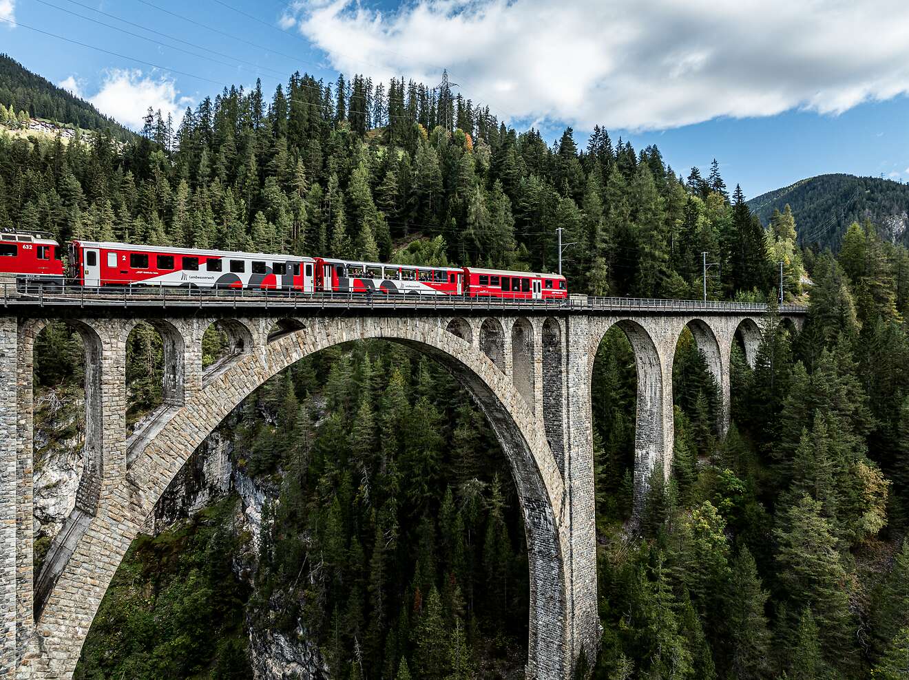 Experience the railway history of Graubünden on a unique journey through time through the Landwasser World. This fascinating journey focuses on the iconic Landwasser Viaduct, the Wiesen Viaduct, the , the Landwasser Express and the .